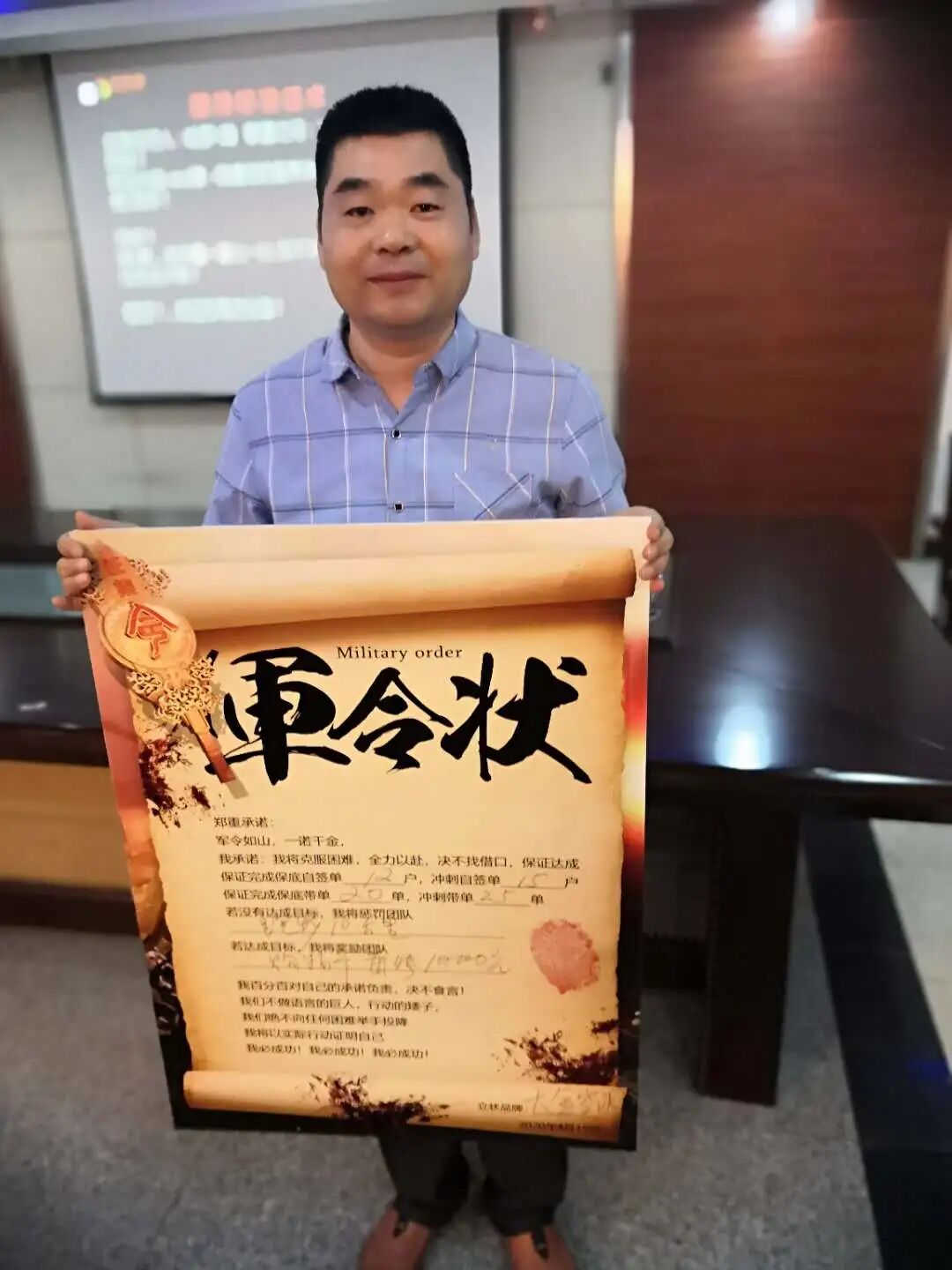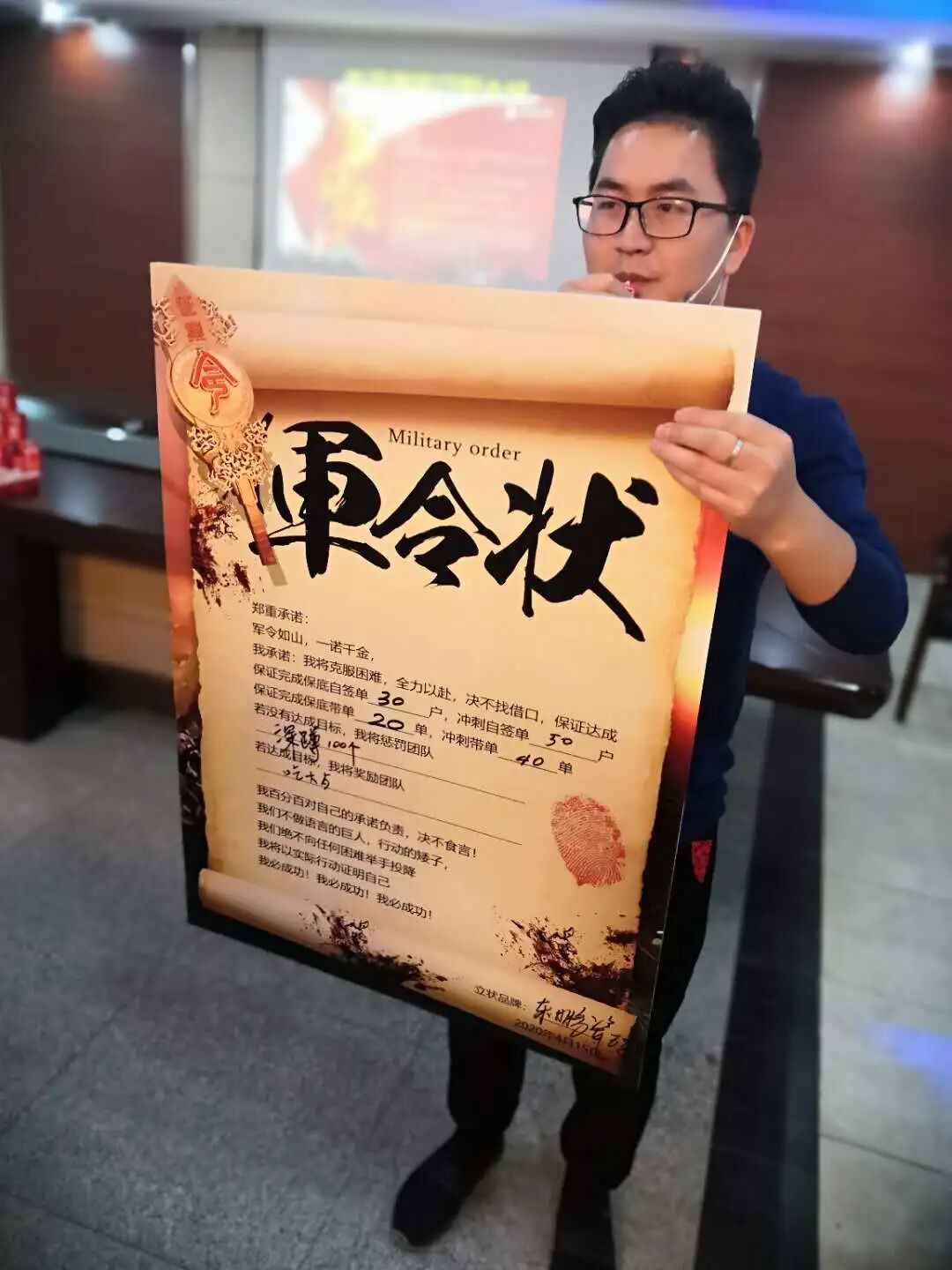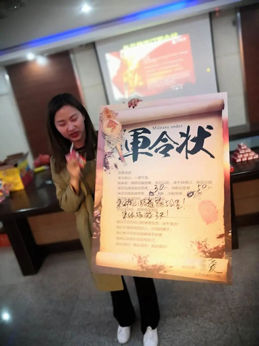 有句话是这么说的:‘给自己定个小目标,先挣他个一个亿。’那么我们也要有目标,不论什么样的奖罚,都是你的承诺,有了承诺就要行动,努力的完成它!超越它!你要相信自己,你是最棒的!你的团队是最棒的!