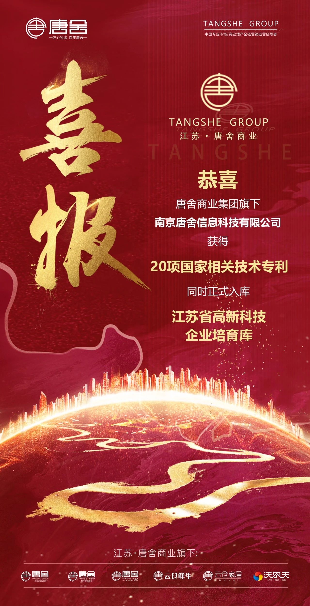 唐舍商业集团旗下南京唐舍信息科技荣获20项国家专利同时入库江苏省高企培育