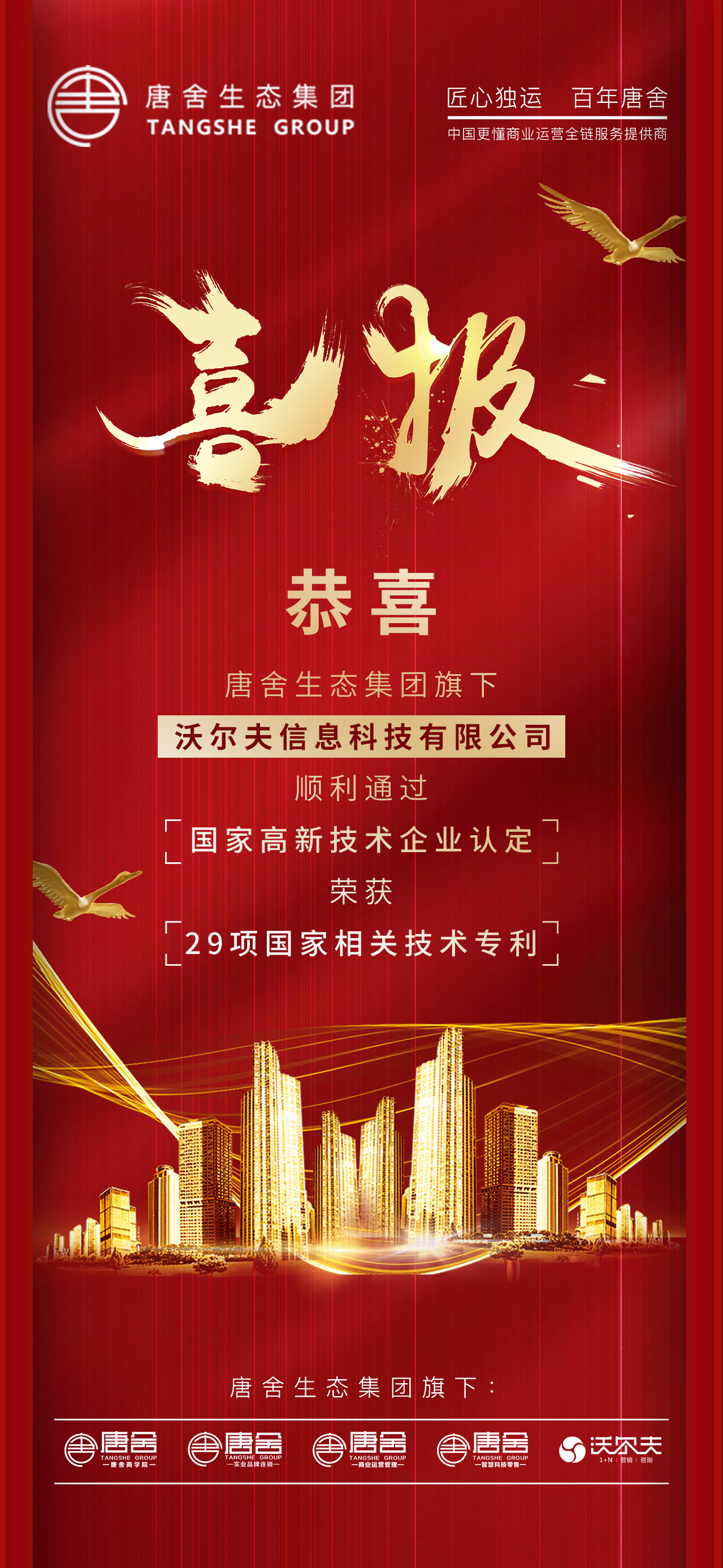 热烈祝贺唐舍生态集团旗下镇江沃尔夫信息科技通过国家高企认定
